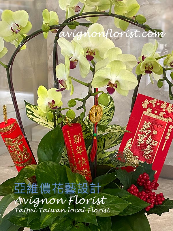 Notes: Approximate size is 40-50 cm. Color can vary from light green to yellow. Decorations can be modified to fit the season or occasion (Christmas, Lunar New Year, or any other time of year).