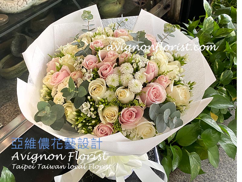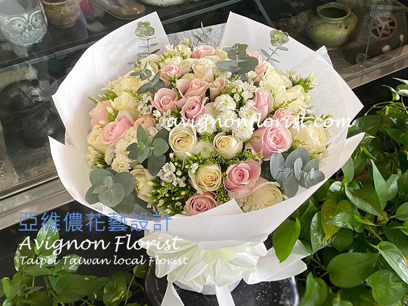 When we say you are Head Over Heels it means that you are totally in love with someone. Let that special person know how you feel with this charming wrapped bouquet featuring pink and white roses with delicate accent flowers. Perfect as a fresh, modern romantic gesture for Valentine’s Day, birthdays, or anniversaries.
